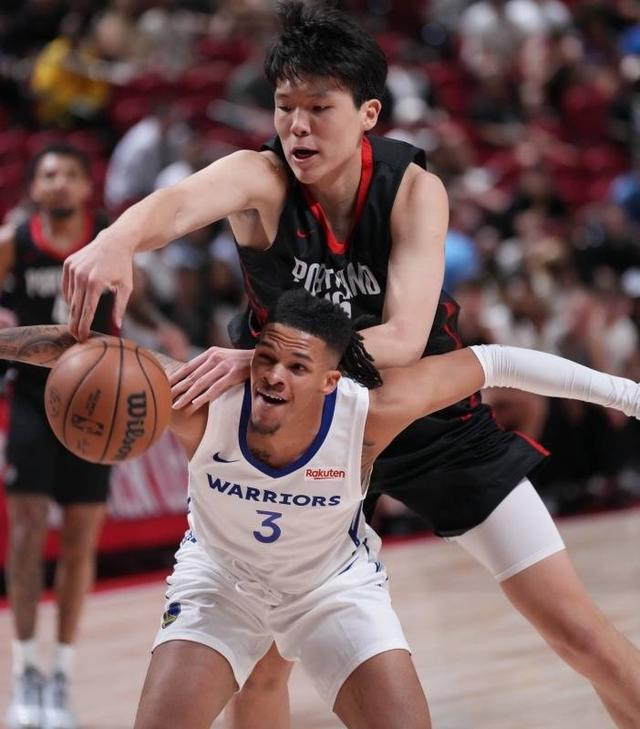 防守端,杨瀚森同样亮眼,单场送出3次封盖,其中一记钉板大帽引爆现场。他对位的勇士内线组合博尔登和大莫布里合计仅得5分,足见其护筐威慑力。尽管全场犯规5次,因犯规过多被限制了出场时间,但其防守选位和换防到位率已获教练组认可。